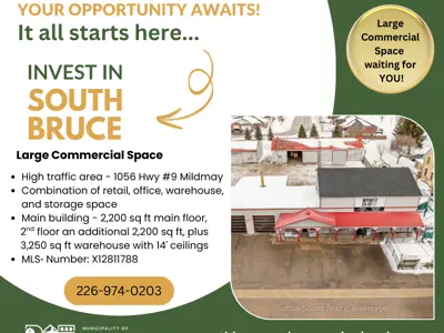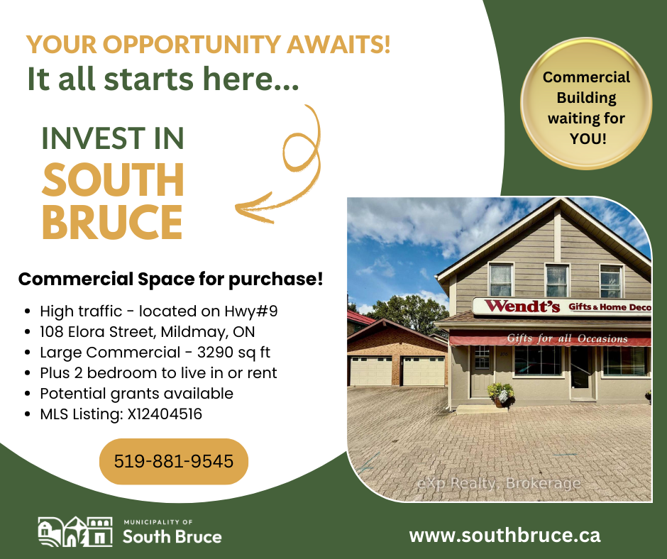 - High visible location on 12 Clinton Street South, Teeswater - at lights, corner building