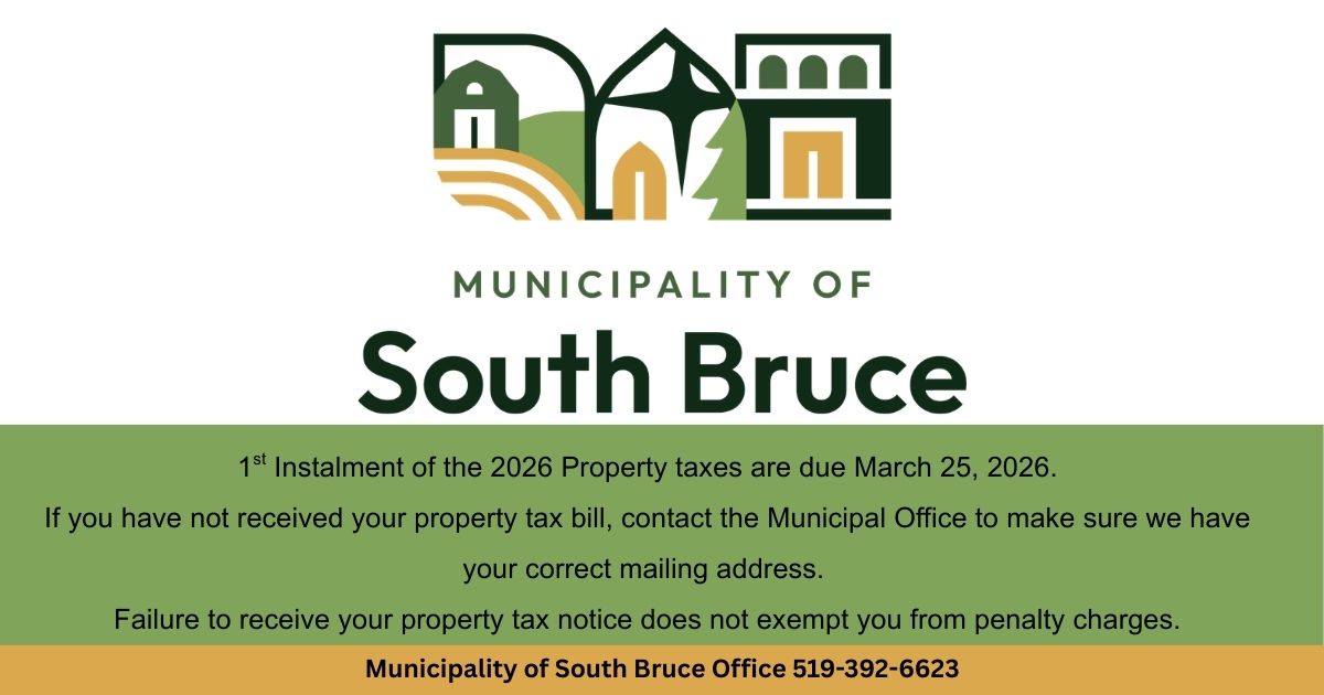 A reminder that the first instalment of 2026 property taxes is due March 25, 2026.