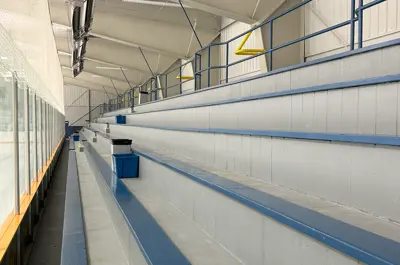 Facility features include: indoor arena with spectator seating, dressing rooms, private meeting rooms, full kitchen and bar, stage, and free wifi.